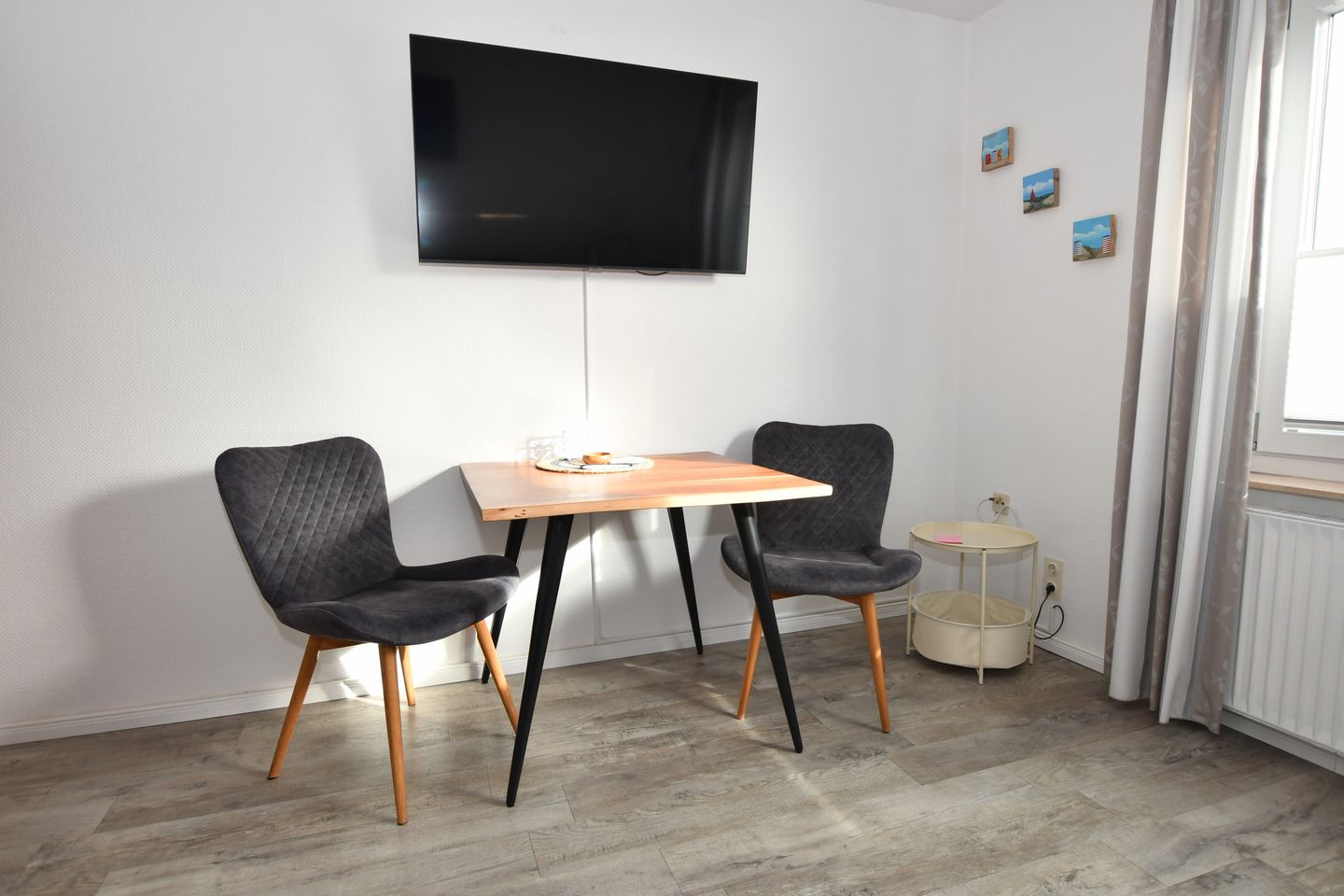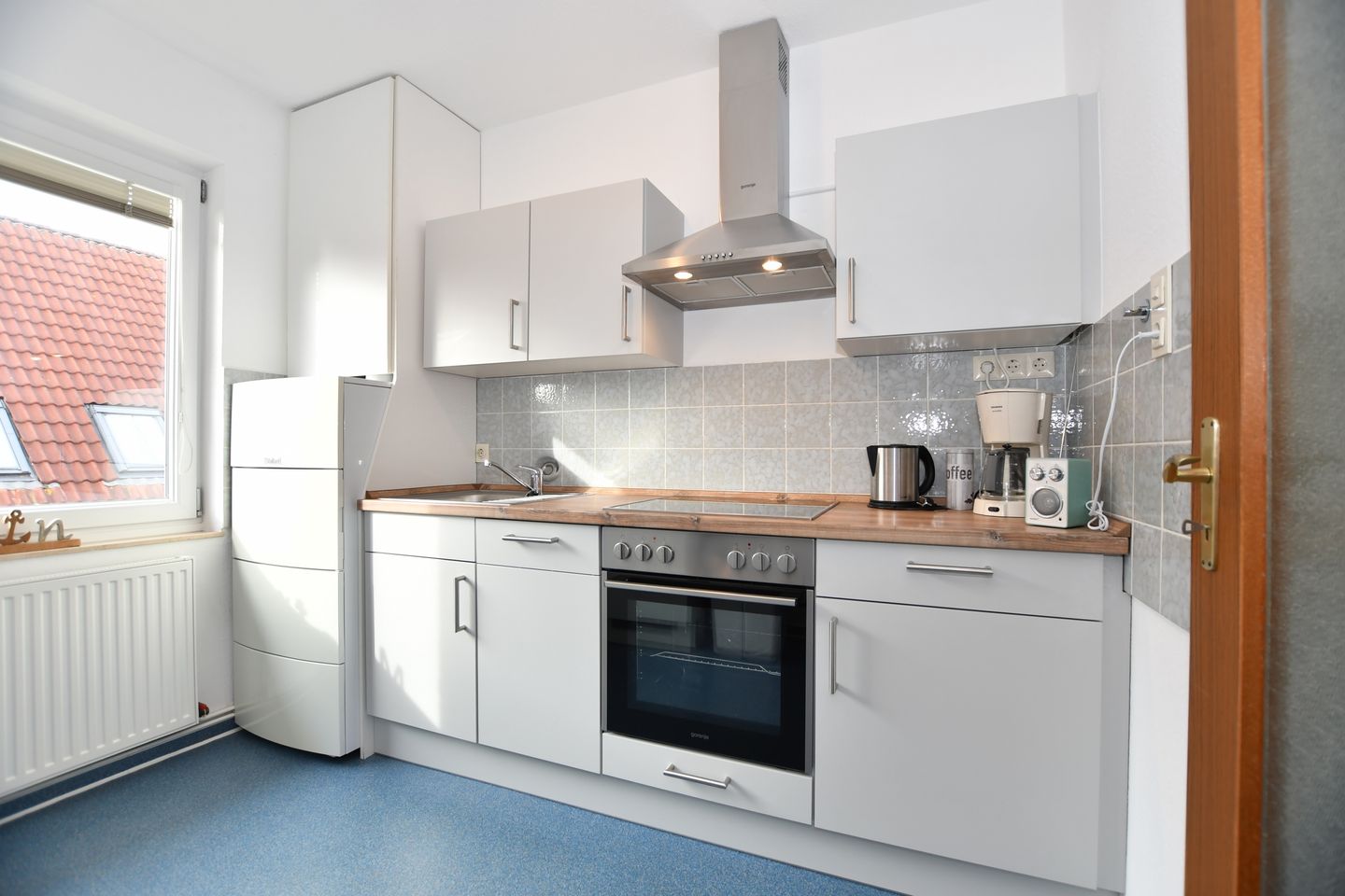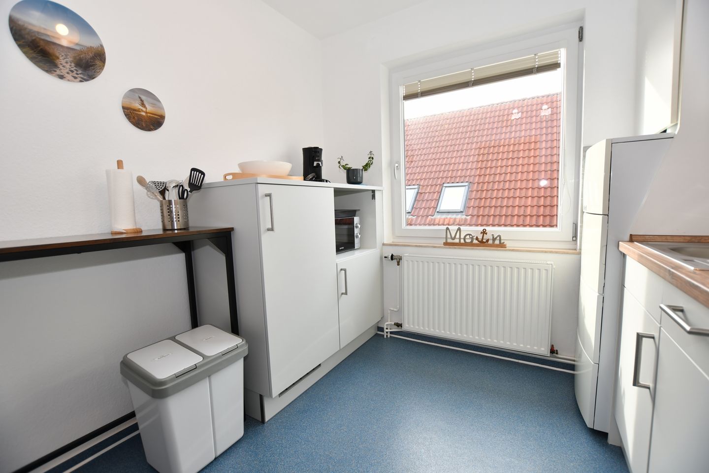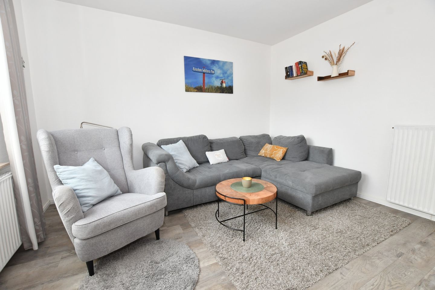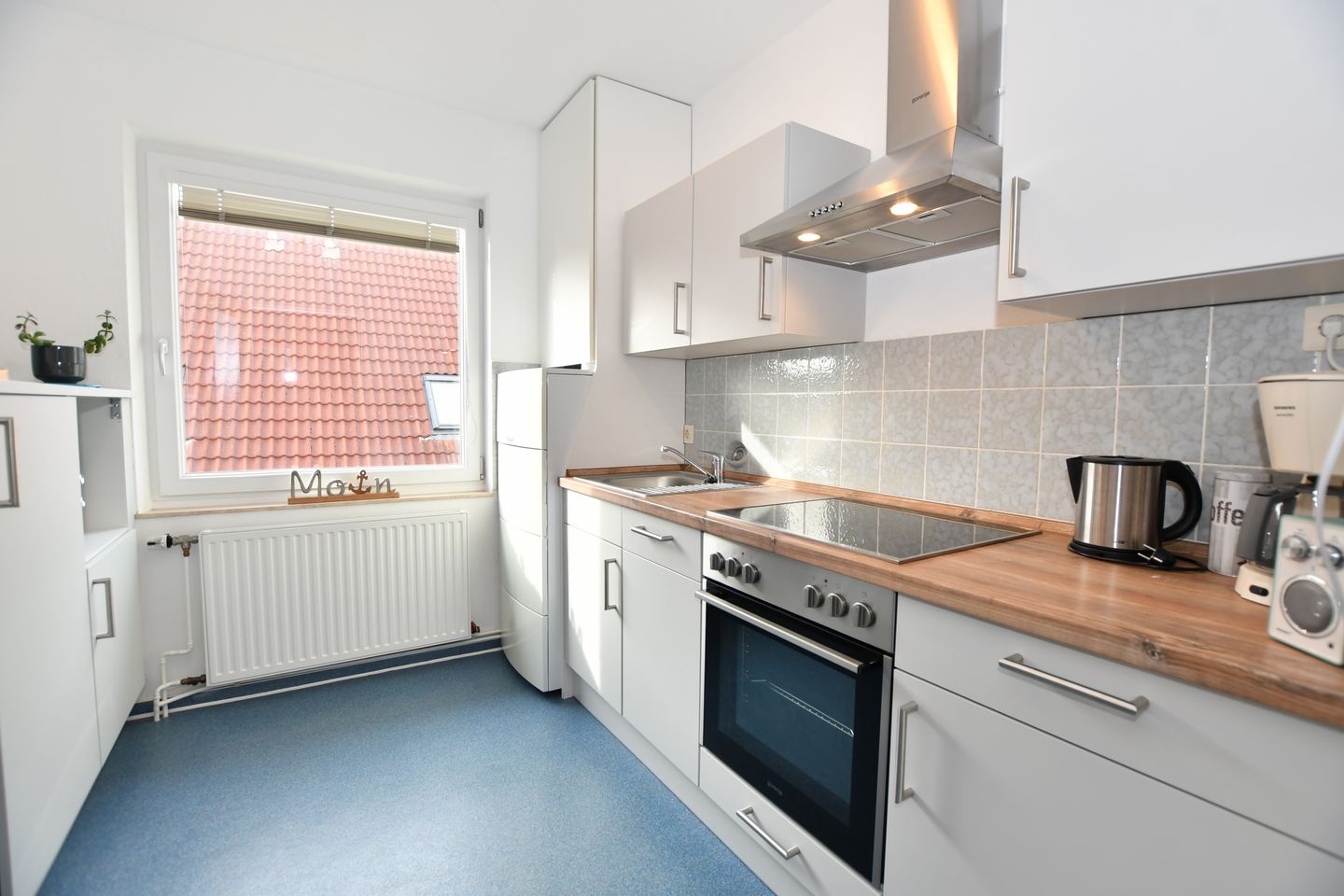 Borkum, die größte der ostfriesischen Inseln bietet für jede und jeden alles, was einen schönen und entspannten Urlaub ausmacht. Erholung am Strand, in den Dünen, bei einer Wanderung oder Strand- und Wassersport sind nur einige Ideen, wenn man an einen Urlaub auf unserer Insel denkt. Dazu gehört die richtige Unterkunft, die Sie bei uns in der ersten Etage finden. Wir als echte Borkumer bieten Ihnen auf ca. 47 m² einen großen Teil dessen, was Erholung bedeutet. Wir sind vor Ort und stehen Ihnen gerne für Fragen zur Verfügung. Die Wohnungen sind mit allem ausgestattet, was Sie benötigen. Ein Wohnzimmer mit einer gemütlichen Couch, einem TV und einem Esstisch. Ein WLan Anschluss ist obligatorisch. Ein Internetradio finden Sie in der gut ausgestatteten Küche. Spülmaschine, Herd mit Backofen, Mikrowelle, Kaffeemaschine, Toaster, Wasserkocher und eine Kaffeepadmaschine stehen Ihnen ebenso zur Verfügung, wie alle Kochutensilien, die für ein 5 Gänge Menü benötigt werden, dabei gibt es auf der Insel genug Restaurants, die Ihnen die Arbeit gerne abnehmen. Im Schlafzimmer erwartet Sie ein großes Doppelbett und ein Schrank mit genügend Platz für alle Wetterkleidung die Sie vielleicht benötigen. Und die große Garderobe im Flur freut sich auf Jacken und Mäntel. Das Tageslicht-Bad mit Dusche (Duschwanne), Waschbecken und WC ist hell und freundlich, ebenso, wie die ganze, modern eingerichtete Wohnung.